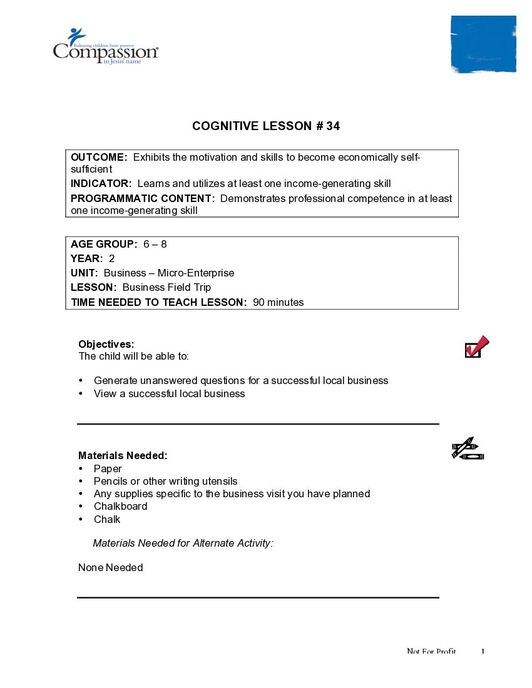 The lesson “What is a Business?” helps to develop motivation and knowledge in children to enable them to be economically self-supporting …