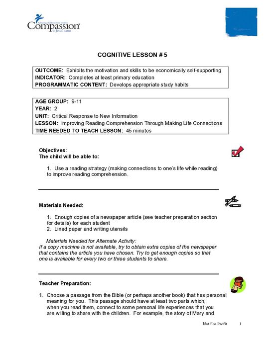 The lesson “Improving Reading Comprehension Through Making Life Connections” works with children to develop reading strategies in order t…