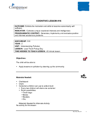 The lesson “Local Trash Pickup Day” teaches children about personal responsibility and environmental stewardship by cleaning up the local community. The children will apply the lessons they’ve learned on pollution by working together to pick up trash around the community area. The lesson includes guided instructions for the teacher, including preparation, a script, and suggested activities to facilitate further learning in a fun and interactive manner. This lesson is designed for children between 6-8 years, and is the 16th lesson in the 2nd Year “Understanding Pollution” unit.