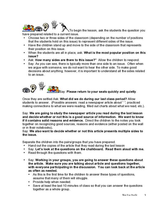 The lesson “Recognizing More Than One Side to a Discussion” works with children’s critical thinking ability to enable them to expla…