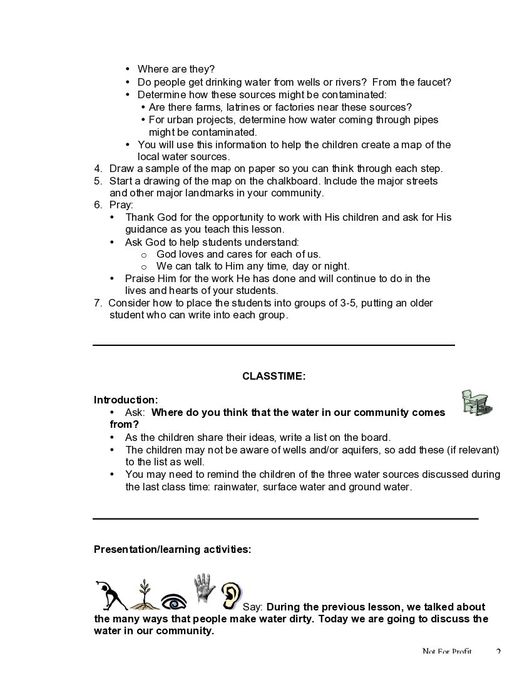The lesson “Using Safe Water” further works with children to help them to understand the importance of water sanitation and safety. The c…