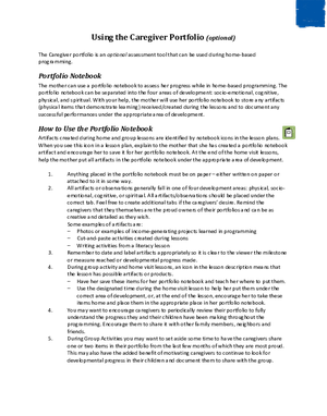 SEC Assessments and Questionnaires: Using the Caregiver Portfolio