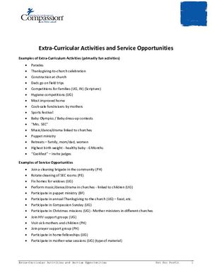 Extra-Curricular Activities and Service Opportunities is a list of examples that may be used to increase parental engagement. Activities can be contextualized.