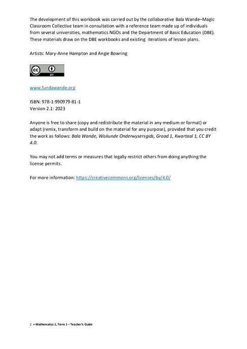 The Bala Wande Teacher Guide provides a daily guide to teaching mathematics so that learners will develop their mathematical understanding and begin to calculate with confidence.