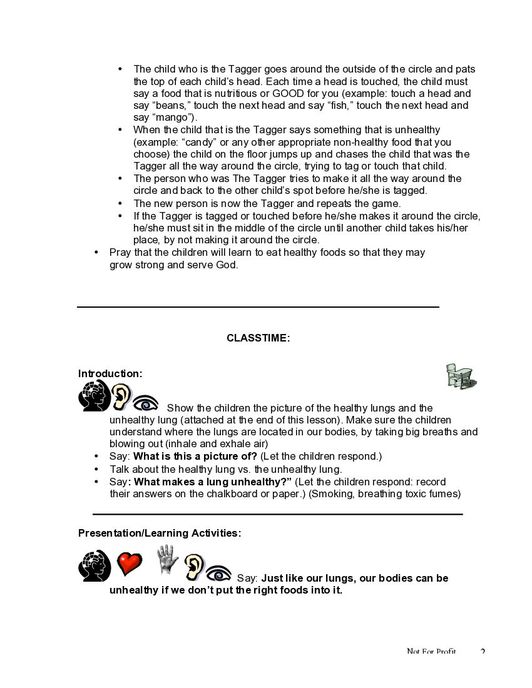 The lesson “Good Nutrition Makes You Smile” is part nineteenth of a 42 part series on human development, the human body, health, and safety. This lesson teaches about choosing healthy food. This resource includes a lesson plan for theteacher on how to prepare beforehand, class-time content to facilitate learning, hands- on activities facilitating further learning, and a teacher assessment at the end. This lesson is designed for a group of young children between the ages of 6 and 8, and is the 31st physical development lesson in the Core Curriculum, 6-8 years, Year One.