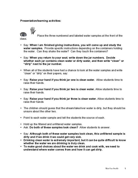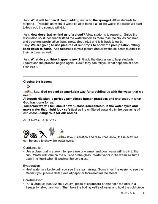 The lesson “Using Safe Water” further works with children to help them to understand the importance of water sanitation and safety. The c…